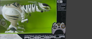1.The robosaur is powered by 8x"AA" batteries (not included). 2.The remote controller is powered by 3x"AA" batteries (not included).